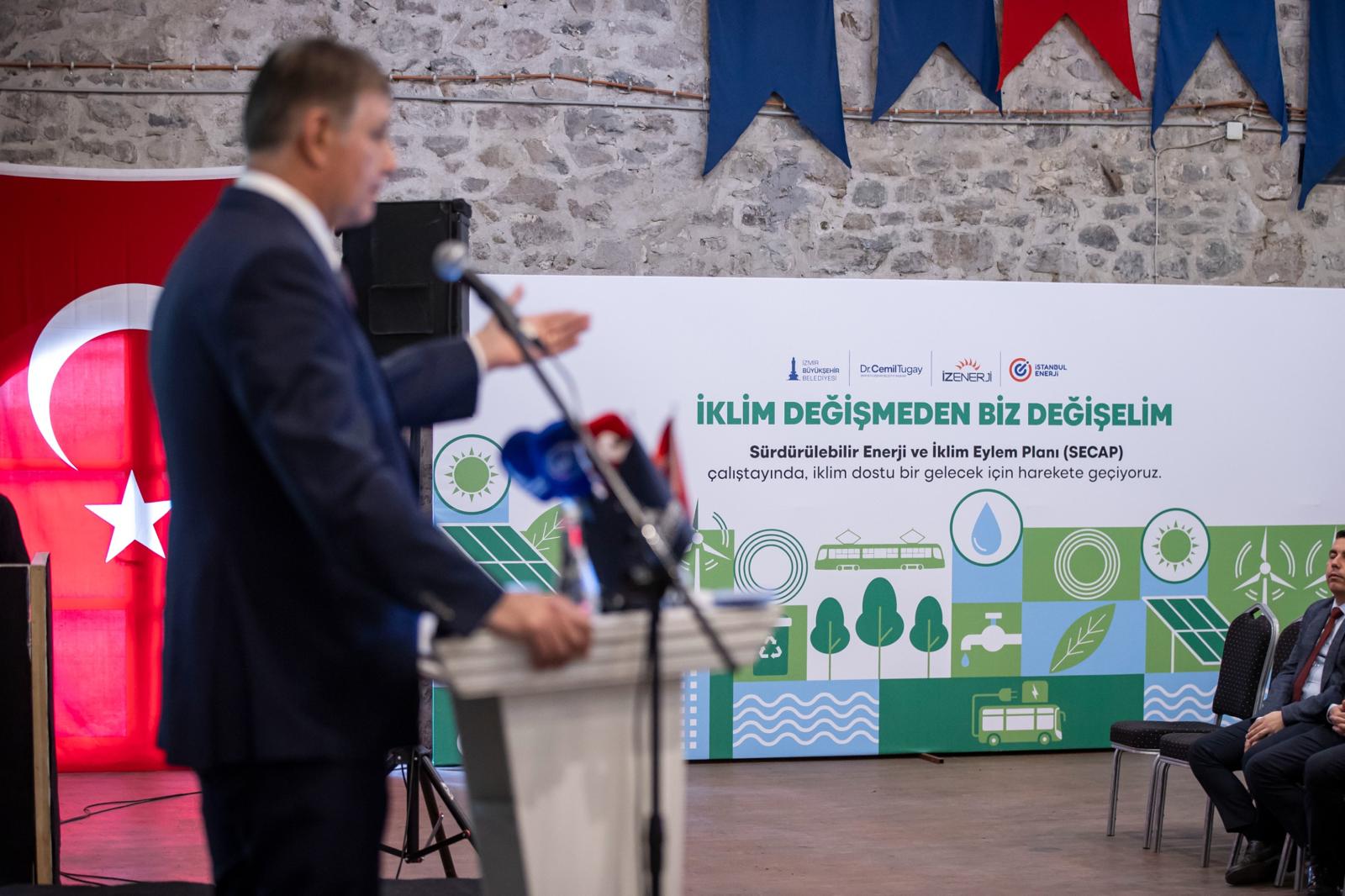 İzmir Büyükşehir Belediyesi, iklim değişikliği ile mücadele kapsamında 2020 yılında hayata geçirdiği İzmir Sürdürülebilir Enerji ve İklim Eylem Planı’nı (SECAP) güncelliyor. Bu kapsamda İzmir Büyükşehir Belediyesi İklim Değişikliği ve Sıfır Atık Dairesi Başkanlığı ile İzmir Büyükşehir Belediyesi iştiraki İZENERJİ AŞ tarafından Tarihi Havagazı Fabrikası’nda “İklim Değişmeden Biz Değişelim” temasıyla bir çalıştay düzenlendi. Çalıştayın ev sahipliğini İzmir Büyükşehir Belediye Başkanı Dr. Cemil Tugay yaptı.