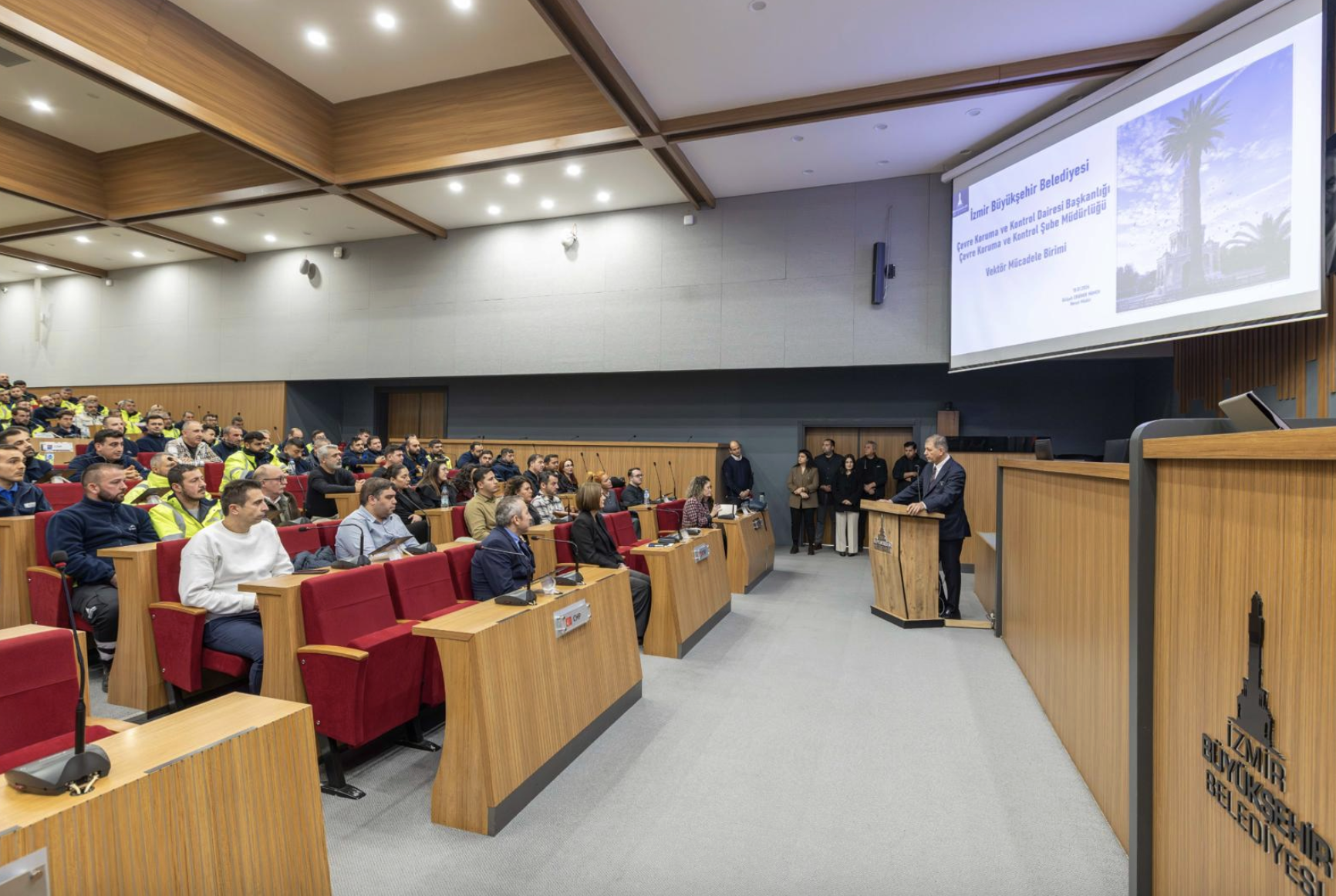 İzmir Büyükşehir Belediye Başkanı Dr. Cemil Tugay, İzmir Büyükşehir Belediyesi Çevre Koruma ve Kontrol Dairesi Başkanlığı Çevre Koruma Ve Kontrol Şube Müdürlüğü Vektör Mücadele Birimi çalışanları ile bir araya geldi. Meclis salonundaki buluşmada konuşan Başkan Tugay, sivrisinek ile haşereler gibi çevre ve halk sağlığını tehdit eden zararlılara karşı ilaçlama yaparak yoğun mücadele veren ekiplere teşekkür etti.