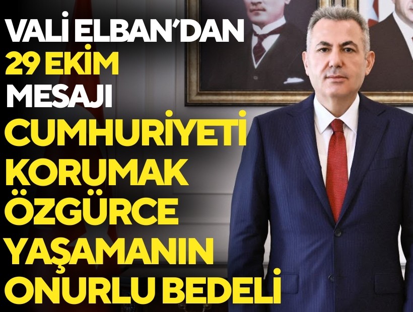İzmir Valisi Süleyman Elban, 29 Ekim Cumhuriyet Bayramı nedeniyle kutlama mesajı yayımladı. Vali Elban mesajında; "Cumhuriyet; tarihin akışını değiştiren büyük bir milletin, esareti reddeden onurlu yürüyüşüyle yazdığı destanın adıdır. Cumhuriyet, bir halkın imkânsızlıklar içinde gösterdiği direnişle karanlığı aydınlığa çevirdiği bir çağrıdır. Cumhuriyet yalnızca bir yönetim biçimi değil; fikri hür, vicdanı hür, irfanı hür nesillerin teminatıdır." dedi.