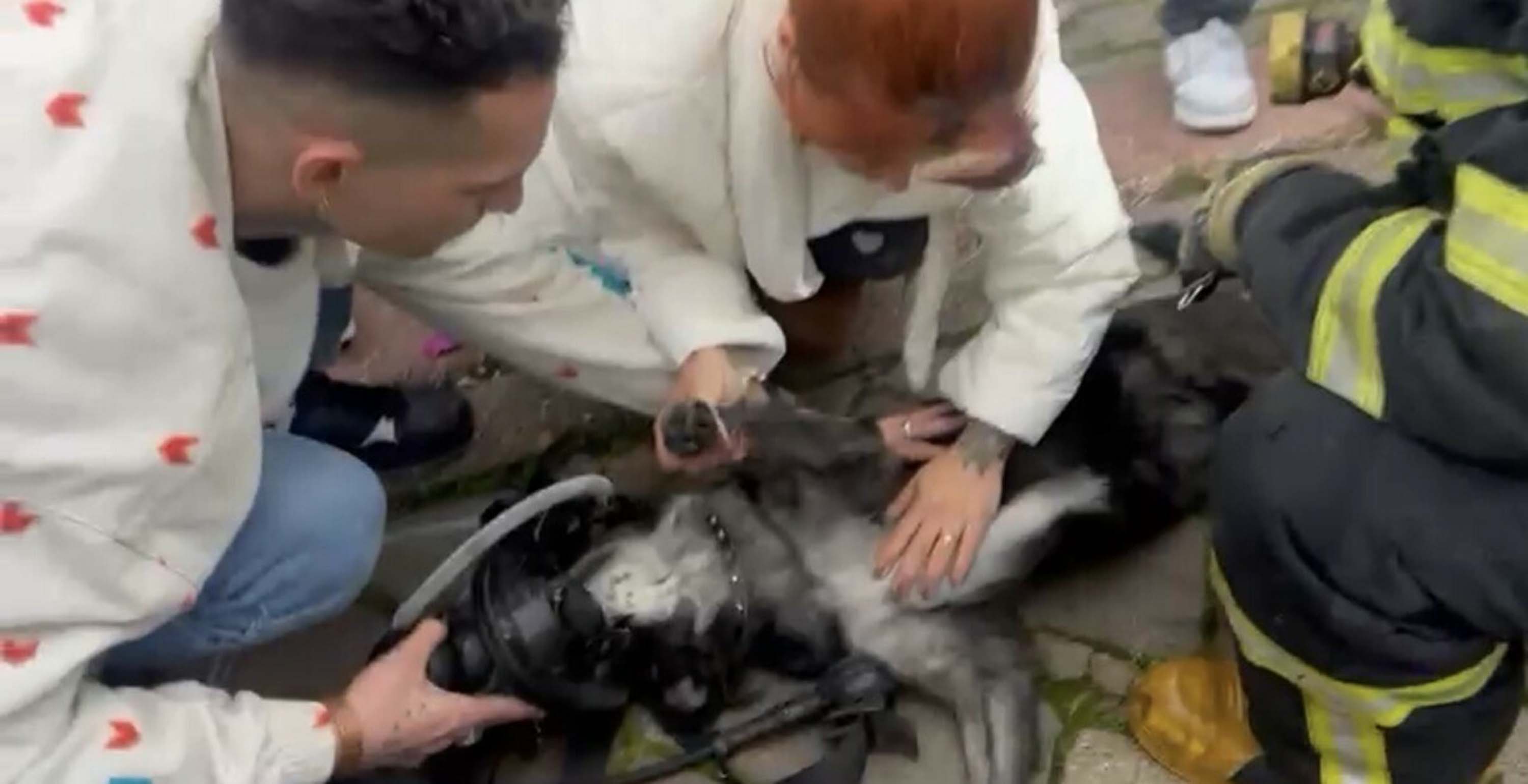 Yangında 2 köpekten biri ö*dü, diğeri kalp masajıyla yaşama döndürüldü pic.twitter.com/Zv2sKNamtn